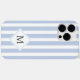 Monogram Initialen staubige hellblaue Streifen Case-Mate iPhone 14 Pro Max Hülle