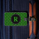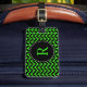 Monogram Initials Herringbone Pattern Neon Green Gepäckanhänger