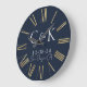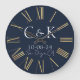 Monogram Initials Navy Blue Wedding Große Wanduhr