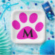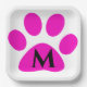 Monogram Initials Paw Prints Pink Black Niedlich G Pappteller