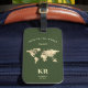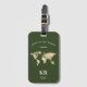 Monogram Initials World Map Forest Green Gepäckanhänger
