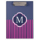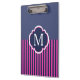 Stilvoll marineblau und heiß rosa Streifen Muster mit anpassbarem Monogramm.