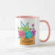 Eine wunderschöne rosa blaue lila grüne Blumenarrangements aus Blume in einem Korb auf dieser Kaffee-Tasse. Personalisieren Sie es mit Ihrem Namen. Macht ihr ein großartiges Geschenk. Es ist in vielen anderen Farbtönen und auch farblos schlicht. Zwei Größen, 11 oz und 15 oz.