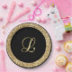 Monogram L goldenes Skript auf schwarzem Hintergrund mit glitzerndem goldenen Hintergrund.