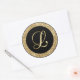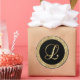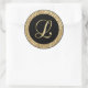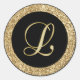 Monogram L goldenes Skript auf schwarzem Hintergrund mit goldenem kreisförmigem Hintergrund.