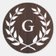 Monogram Laurel Wreath Rustic Wood Pattern Runder Aufkleber