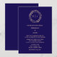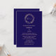 Monogram Leaf Crest Navy Blue Beige Classy Wedding Einladung