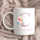 Monogram Letter C Floral Watercolor Kaffeemaschine Tasse Eine florale personalisierte Kaffeemaschine mit einem Namen und Rose rosa Monogramm Buchstaben "C", und mit einem dekorativen Aquarellfolien und Blume. Sie können es einfach mit Ihrem Namen anpassen. Würde ein schönes Geschenk für Ihre Lieben machen!