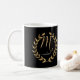 "Monogram Script Letter M Black n Gold Name Coffee Tasse." Eleganter und ausgeklügelter Goldblattkranz mit Monografie, Alphabet, Buchstabe M in Goldbarren Glitzer. Personalisieren Sie Ihren Namen in der Skripthandschrift. Kunst des international lizenzierten Künstlers Audrey Jeanne Roberts, Urheberrecht.