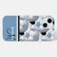 Ein auffälliges und stilvolles Fußballfußball-Design mit einem Muster aus schwarz-weiß und hellblau-weiß-weißen Fußbällen mit Akzenten bei der Koordination von Blau, Schwarz und Weiß mit kuppelbarem Text für den Monogramm-Initial und Namen des Fußballspielers, Fußballfans oder Fußballtrainers. Ideal für den Fußballspieler, dessen Teamfarben blau und weiß sind. Andere Farbkombinationen sind in unserem Shop erhältlich und wir freuen uns auf Ihre individuellen Wünsche. Bitte kontaktieren Sie uns vor dem Kauf über unseren Geschenkartikelladen.