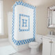 Der Duschvorhang ist mit einem großen, hellblauen Monogramm auf weißem Hintergrund mit einem geometrischen Rahmen aus babyblauen, hellblauen und weißen Dreiecken versehen. Der Außenrand weist hellblaue, weiße und blassblaue Diamanten in einem Büffel-Karo auf. Fügen Sie Ihren Initial in der Sidebar hinzu. Um das stilvolle Design Light Blue und White Gingham Kariert Pattern auf anderen Gegenständen zu sehen, klicken Sie auf den Link "Rocklawn Arts". Digitales Bild. Copyright ©Claire E. Skinner. Alle Rechte vorbehalten.
