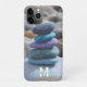 Moderne Monogram M & Name Beach Kiesel Stones Blue Lila iPhone 11Pro Case.