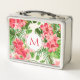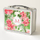 Schönes Blumenmuster des Hibiskus auf Bistre Hintergrund. Ausgereifte und feminine Metal-Lunchbox mit Monogramm in weißer Rundform. Sie können Text (Schriftart, Farbe, Größe und Position), Größe und Ausrichtung des Designs ganz einfach ändern, indem Sie auf die Schaltfläche Anpassen klicken. Matching Schlüsselanhänger, Kissen, Gepäck, Gepäckanhänger und mehr... Vergessen Sie nicht die ganze Kollektion Vintager Blumenmuster mit Monogramm.