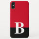 Monogram Mit Monogramm Simple Modern Orange Blue Phone Case verfügt über einen personalisierten Ersteintrag in moderner weißer Typografie auf rotem und schwarzem Hintergrund. Personalisieren Sie diese, indem Sie den Text in dem dafür vorgesehenen Textfeld bearbeiten. Die Farbe von Schriftart und Schriftart kann durch Individualisieren verändert werden.
