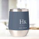 Monogram Modern Minimalist Classic Navy Blue White Monogrammed Thermal Wine Tumbler
