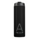 Eine moderne und dezent Personalisierte Name und Initial Letter Stainless Steel Water Flasche mit einer Custom Monogram in einem klassischen Minimal Sans Serif Schriftart für ein einfaches und raffiniertes zeitloses männliches Aussehen. Auf einem schwarz isolierten Reisetug grau dargestellt, können die Textfarben und Schriftart geändert werden, um Ihren eigenen Stil zu schaffen.