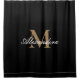 Monogram Modern Schwarz-weiß Gold Elegante Script Duschvorhang
