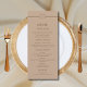 Elevate your reception tables with this personalized, Minimal Taupe Christian Wedding Menu Card, featuring a refined and understated aesthetic. Designed with a minimalist, lined layout, this card showcases an organic oval shape at its center, beautifully framing the couple’s monogram for a personalized touch. The chic brown typography pairs effortlessly with an elegant script font, all set against a classic light taupe background. Perfect for a simple, modern wedding, this menu card, with a meaningful bible verse on the back, brings a sense of calm sophistication to your special, God-centered day.