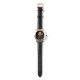 Luxuriöse elegante schwarze Lederuhr für Frauen mit einem goldenen Glitzer mit Monogramm Platz und personalisierten Namen Signatur.