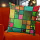Modernes Design-Kissen mit geometrischem Mosaikmuster mit Aquarelleffekten in verschiedenen Farben. Sie können das Design skalieren oder drehen und den Text bearbeiten oder löschen.