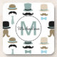 Diese lustigen Drink-Coaster zeichnen sich durch ein Muster aus Top-Hüten, Schnurrbart und Bugs auf weißem Hintergrund aus. Die Farbtöne sind aquamarin, hellblau, braun, schwarz und braun. Ein weißer Kreis-Banner in der Mitte hält Ihr Monogramm in passendem Blau und Ihren Namen in schwarz darüber.