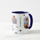 Monogram Name 3 Foto Collage Trendy Modern Coffee Tasse bietet eine Foto-Collage von drei Ihrer Lieblings-Fotos mit Ihrem personalisierten Namen und Monogramm in elegantem blauen Skript. Personalisieren Sie den Text durch Bearbeiten in den bereitgestellten Textfeldern. Perfekt zum Geburtstag, Weihnachten, Muttertag, Vatertag, beste Freunde und vieles mehr. FOTO TIPP: Zentrieren Sie Ihre Fotos vor dem Hochladen nach Zazzle. Entworfen von ©Evco Studio www.zazzle.com/store/evcostudio