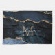 Monogram Name Agate Navy Blue Gold Edelstein Marmo Geschirrtuch