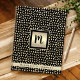 Ein Imitat mit Goldfolienquadrat mit einem schwarzen Skript-Monogramm-Initial und individuelle Name auf einem Goldband, das ein luxuriöses goldlängliches Punktmuster auf schwarz überlagert, unterstreicht dieses schicke, gürtelhafte, moderne monogrammatikalische Spiraljournal. 8 verschiedene Innenpapierdesigns zur Auswahl. Macht jedes Mal, wenn Sie es verwenden, eine stylische Anweisung. Ein großartiges Geschenk für einen Freund und auch für dich! Geben Sie einfach den Anfangs- und Namen Ihrer Wahl ein, und Sie können dieses individuelle Name Spiraljournal Notebook leicht personalisieren. Bitte schicken Sie mir eine Nachricht mit Fragen oder Wünschen.