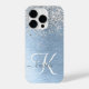 Monogram, Name des blauen, gebürsteten Metalls Sil iPhone 14 Pro Hülle