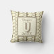 Dieses Monogramm-Kissen ist eine großartige Möglichkeit, einen unerwarteten Akzent zu Ihrer Zuhause hinzuzufügen oder einen besonderen Sake für eine Hochzeit oder Hauswärmung zu schaffen. Ein goldenes geometrisches Muster erscheint vor einem cremefarbenen Hintergrund auf der Vorderseite und der Rückseite dieses Kissens. Der Buchstabe "U" wird zusammen mit dem Familiennamen und dem Jahr in einem Quadrat angezeigt. Der Buchstabe, das Jahr und Ihr Name können schnell und einfach personalisiert werden. Original Design - C. McGouldrick