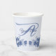 Monogram Name Floral Blue Gray Rustic Elegant Paper Cups. Einzigartiges, schönes, stilvolles Design. Leicht personalisiert zu sein. Schriftart Stil, Größe und Farben können geändert werden. Matching-Elemente verfügbar.
