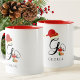 Fügen Sie Ihrem Winteralltag mit dieser maßgeschneiderten Weihnachtsalfabett-Tasse einen Freudensteg hinzu, der einen kühnen Buchstaben G mit Weihnachtsmannmütze und Strumpf enthält. Das minimalistische Design und die rote Inneneinrichtung machen es zu einem idealen Ort für gemütliche Morgenstunden oder Feiertage. Eine durchdachte Wahl für Grace, Gabriel, Georgia oder Gavin - ideal für alle, die modernes festliches Design schätzen.