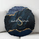Monogram Navy Blue Gold Agate Geode Rundes Kissen