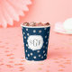 Monogram Navy Blue Silver Glitzer Dot Pattern Pappbecher