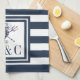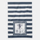 Monogram Navy Blue Stripe Seepferd Nautic Geschirrtuch