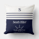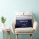 Monogram Navy Blue Stripes Nautic Beach House Kissen
