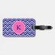 Monogram Navy Blue Zickzack Pattern mit Hot Pink Gepäckanhänger