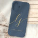 Monogram Neutral Modern Minimalistisch Stylish Navy Blue Gold Script Calligraphy Initials Phone Case.