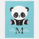 Ein niedlicher Panda-Bär sitzt auf dem Boden auf einem blasen Kaugummi blauen Hintergrund. Personalisieren Sie Ihre Monografie mit Ihrem Namen oder löschen Sie Text in Textfeldern ohne Namen #blankets #giftsforher #monogram