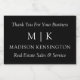 Modernes Minimalistisches Geschäft Danke Mini Sekt Flaschenetikett. Schwarz & Weiß oder wählen Sie Ihre eigenen Farben. Ideal für kleine Unternehmen, Online-Verkäufer, Firmenmarken, echte Anwesen-Agent, Gastfreundschaft und vieles mehr. Einfach mit Ihren Monogramm-Initialen, Firmennamen und Informationen, Jobtitel, Slogan oder sogar mit Ihrem Logo oder persönlichem Markendesign personalisieren.