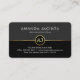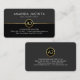 A dark grey and black layered cover is demarcated by a thin faux gold line near the card's center. Resting on this line is your name initials-monogram inside a gold circle. At the top of the card is your prestigious name and job title with the contact details southwards at the base.