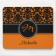 Monogram Orange Schwarz-weiß Damask Mousepad