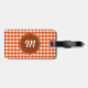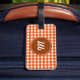 Monogram Orange und White Gingham Muster Gepäckanhänger