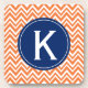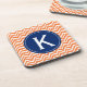 Mit Monogramm orangefarbenes Zickzack Muster mit königsblauen Akzenten Korkkork Untersetzer. Fügen Sie Ihr Monogramm hinzu.