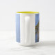 Plage monogrammée ou destination mariage thème des faveurs des invités. Personnalisez avec les noms des mariés et des mariés et la date du mariage en texte blanc. Personnalisez l'initiale monogrammée dans un texte jaune ensoleillé. L'Arrière - plan a le ciel bleu avec un gros plan de trois palmiers avec des frondes qui soufflent dans la brise de l'océan. Amusez-vous à garder des tasses de saké pour la mariée et le marié. Photographie originale de TamiraZDesigns. Visitez ma boutique pour plus d'objets originaux : www.zazzle.com/tamirazdesigns