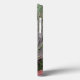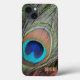 Add your custom personalized monogram initials to this rich peacock feather with tan lettering case. Feys high-definition close up image of a peacock bird feather in colors of copper, royal blue, bright blue and celadon green, mossy background. Elegant and stylish wildlife animal design for the business man or woman with fashion and class.