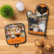 Fügen Sie 12 Fotos, Kinder, Haustiere oder Freunde hinzu und kreieren Sie Ihr eigenes trendiges Collage Grid, schwarz und orange lustige niedliche Küchenofen Mitt und Topfhalter Set mit Ihrem persönlichen oder familiären Monogramm-Namen und erste in weißen Herzen. ++++++++++ Einfach mit Ihren benutzerdefinierten quadratischen Bildern, Texten und Buchstaben personalisieren. Es kann ein nettes, nachdenkliches Geschenk für ein Familienmitglied, einen Freund oder eine Mitarbeiterin an einem Geburtstag, Jahrestag, Weihnachten oder einem anderen Anlass sein.