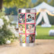 Add 15 family, kids, pets or best friends photos and create your own trendy collage grid crimson red and white tumbler with your personal or family monogram name initial inside a white heart. +++++++++++ Easy to personalize with your custom square images and letter. It can be a nice thoughtful keepsake gift for a family member, friend, or coworker on a birthday, anniversary, Christmas, or any other occasion.