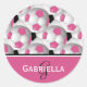 Monogram Pink Black Soccer Ball Pattern Runder Aufkleber