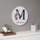 Monogram pink Boho initial clock, perfect Christmas or birthday gift for a daughter, mom, aunt or sister. Customized with monogrammed the letter M and a name. Other letters available in my shop.